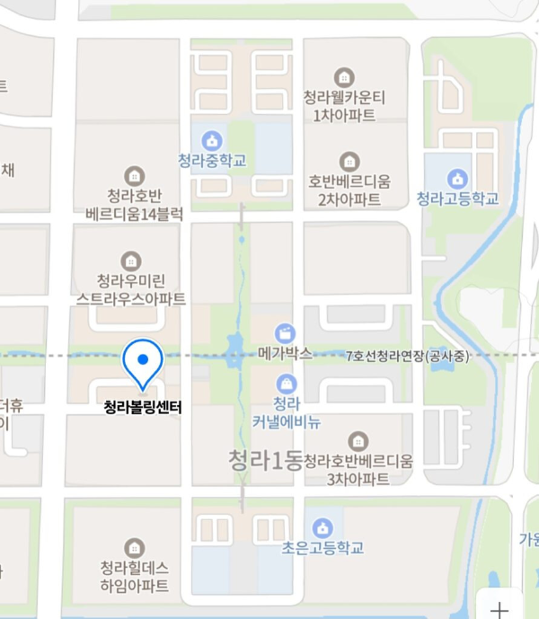 청라볼링센터는 커넬에비뉴 근처에 있어요. 구수욱 근처 홍익파크 빌딩 8층에 있습니다.