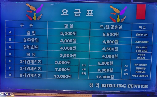 청라볼링센터는 낮에는 일반볼링장이고 밤에는 락볼링장으로 변경된다고 해요. 저희는 5시즘 갔습니다.